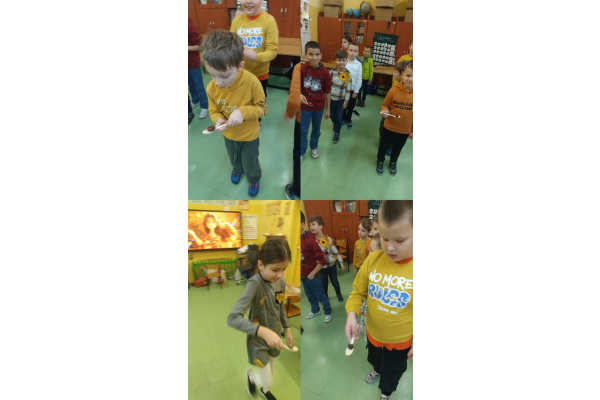 Podczas balu uczniowie brali udział w wielu ciekawych zabawach – były klasyczne konkurencje z wykorzystaniem kasztanów, wyścig kasztanowy, w którym dzieci z zapałem przenosiły kasztany na łyżkach, oraz rzut kasztanem do celu. Nie zabrakło również zabawy ruchowej przy muzyce i swobodnych tańców z konfetti z liści, które wprowadziły wszystkich w prawdziwie jesienny nastrój.