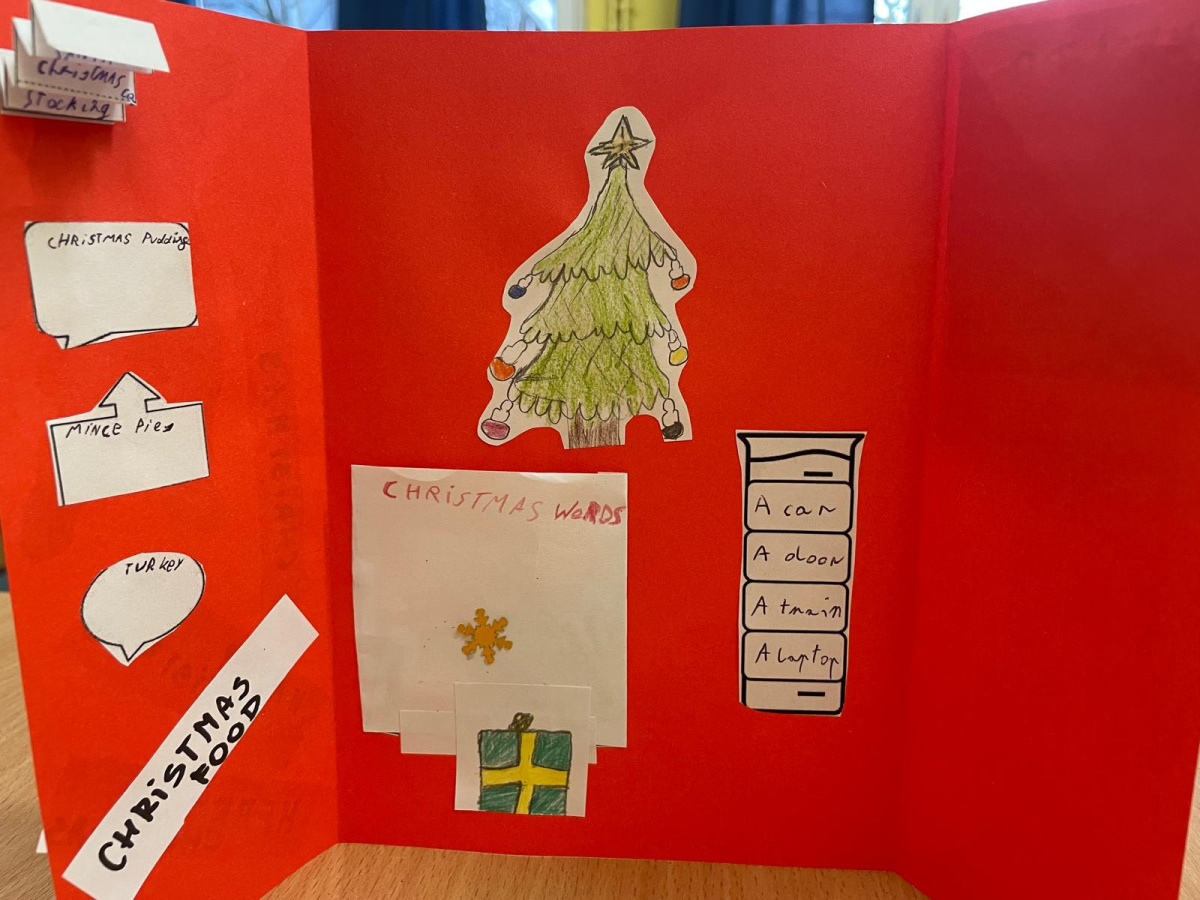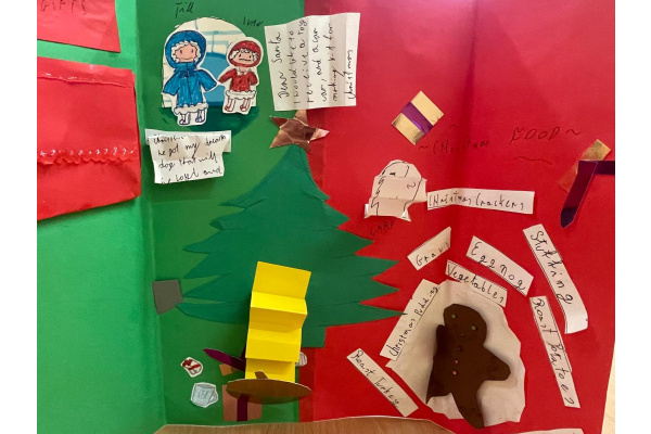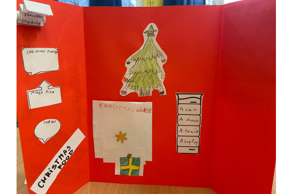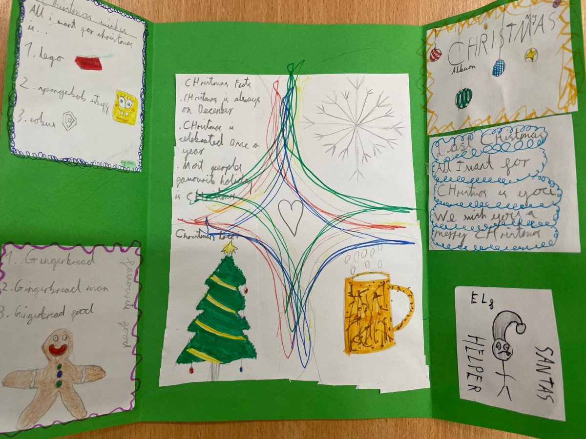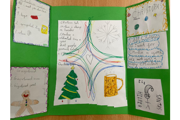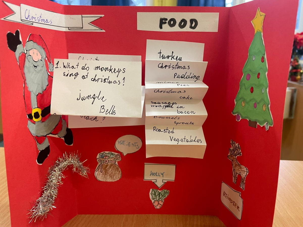 Uczniowie klasy językowej przygotowali świątecznego lapbooka, czyli „książkę na kolana”.