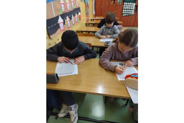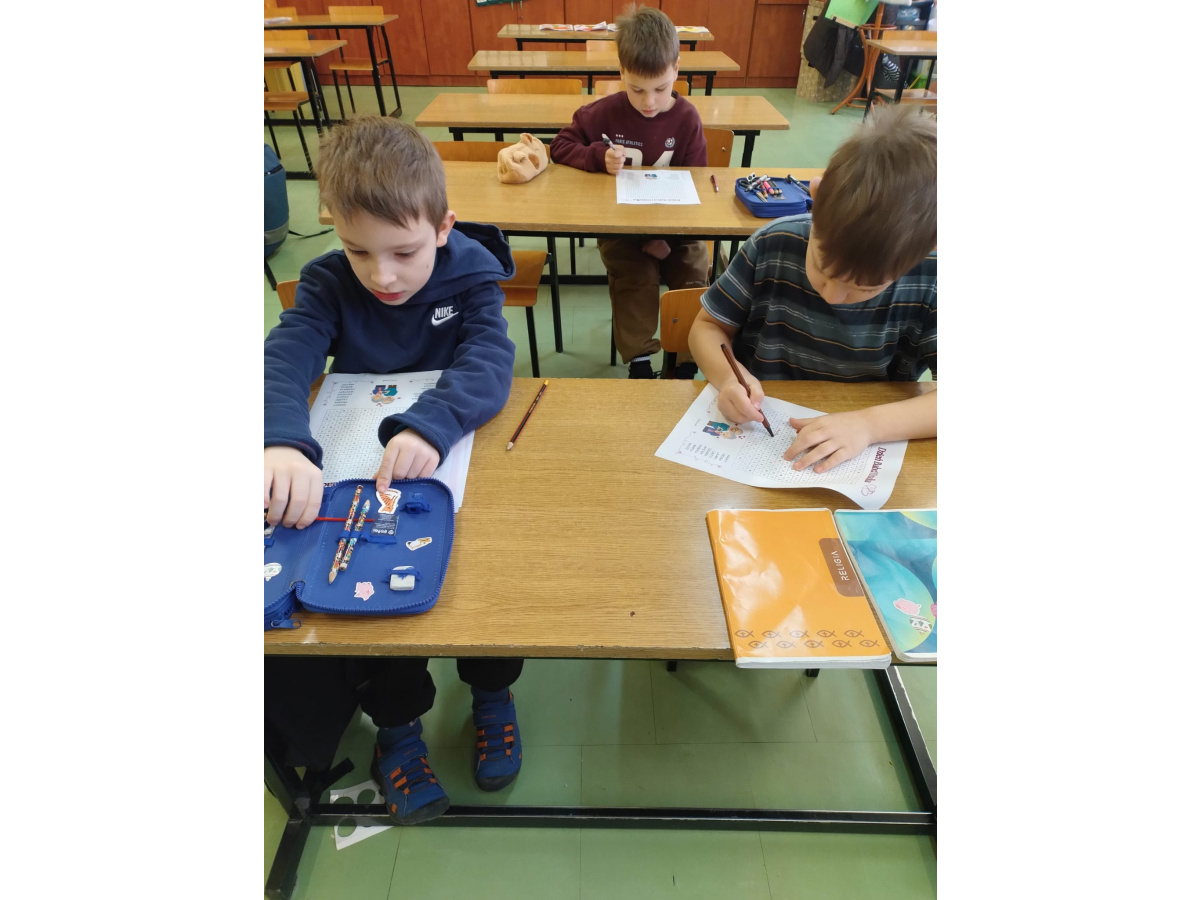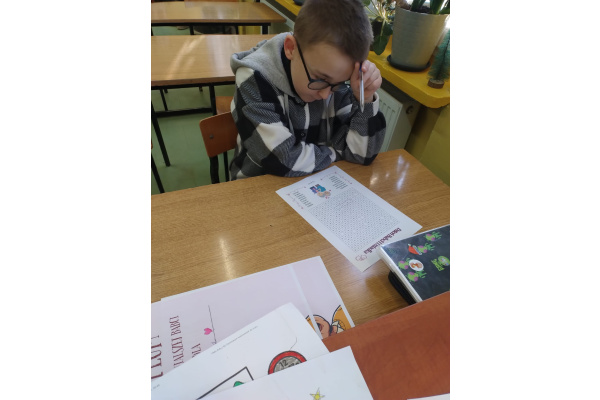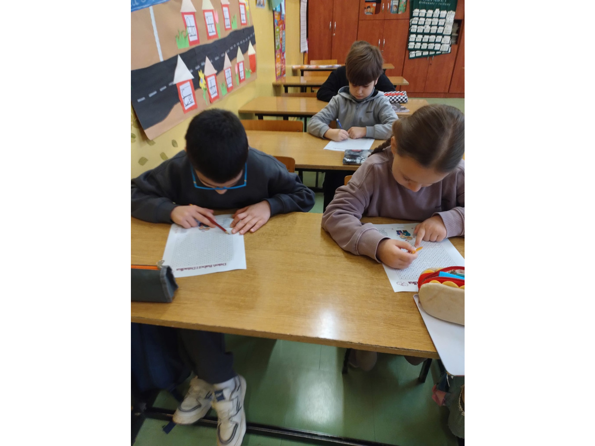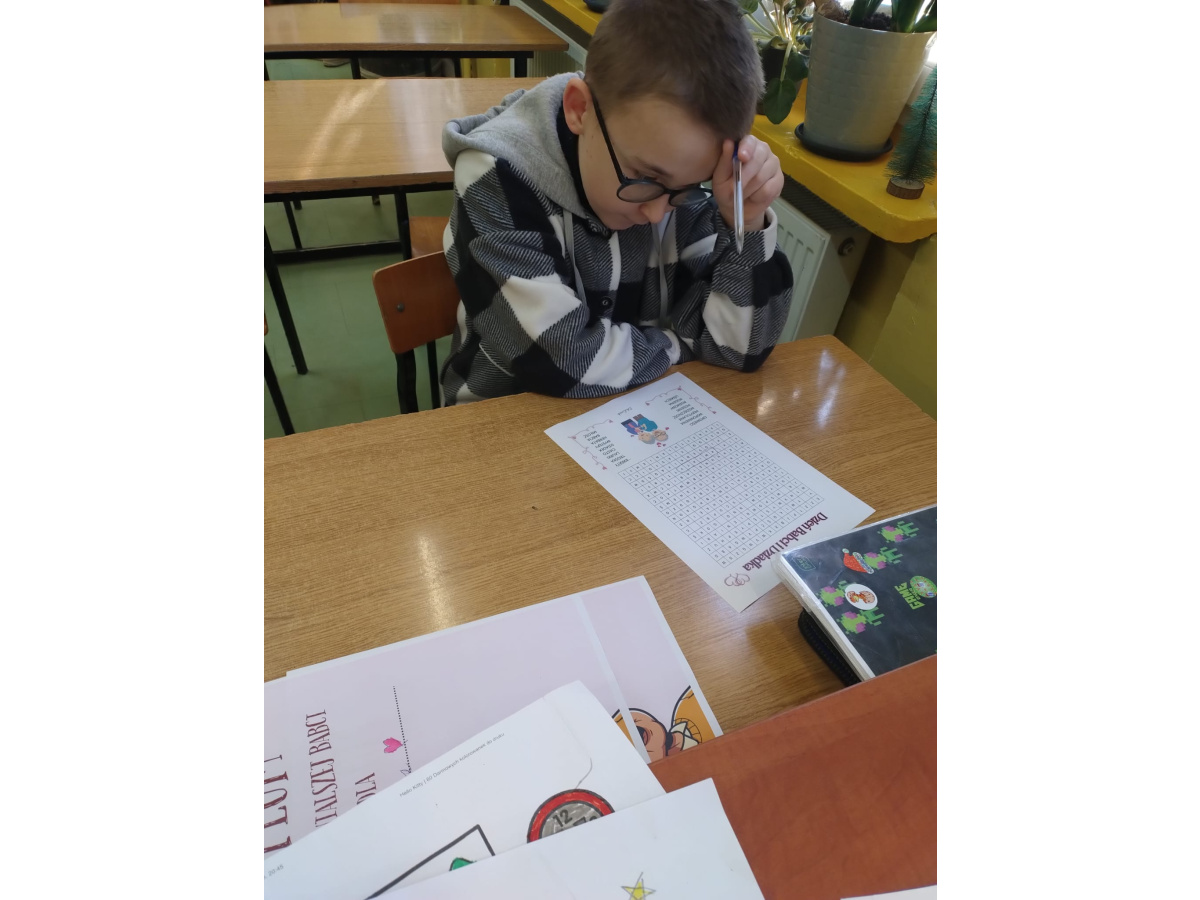 Dodatkowo uczniowie rozwiązywali wykreślankę ze słowami kojarzącymi się z babcią i dziadkiem, co sprawiło im wiele radości i pozwoliło jeszcze bardziej skupić się na bliskich relacjach rodzinnych.