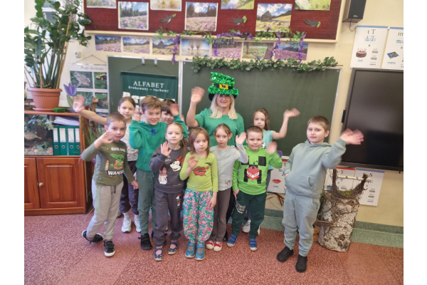 W tym dniu uczniowie przyszli ubrani na zielono,,plakaty wykonane przez dzieci na temat irlandzkiego święta dekorowały drzwi do sal lekcyjnych. Podczas lekcji języka angielskiego uczniowie poznawali ciekawostki o tym kraju, jego historii oraz tradycjach. Nie zabrakło także quizów, gier i wspólnej zabawy. Dzieciom bardzo podobało się rysowanie Leprechauna według instrukcji.