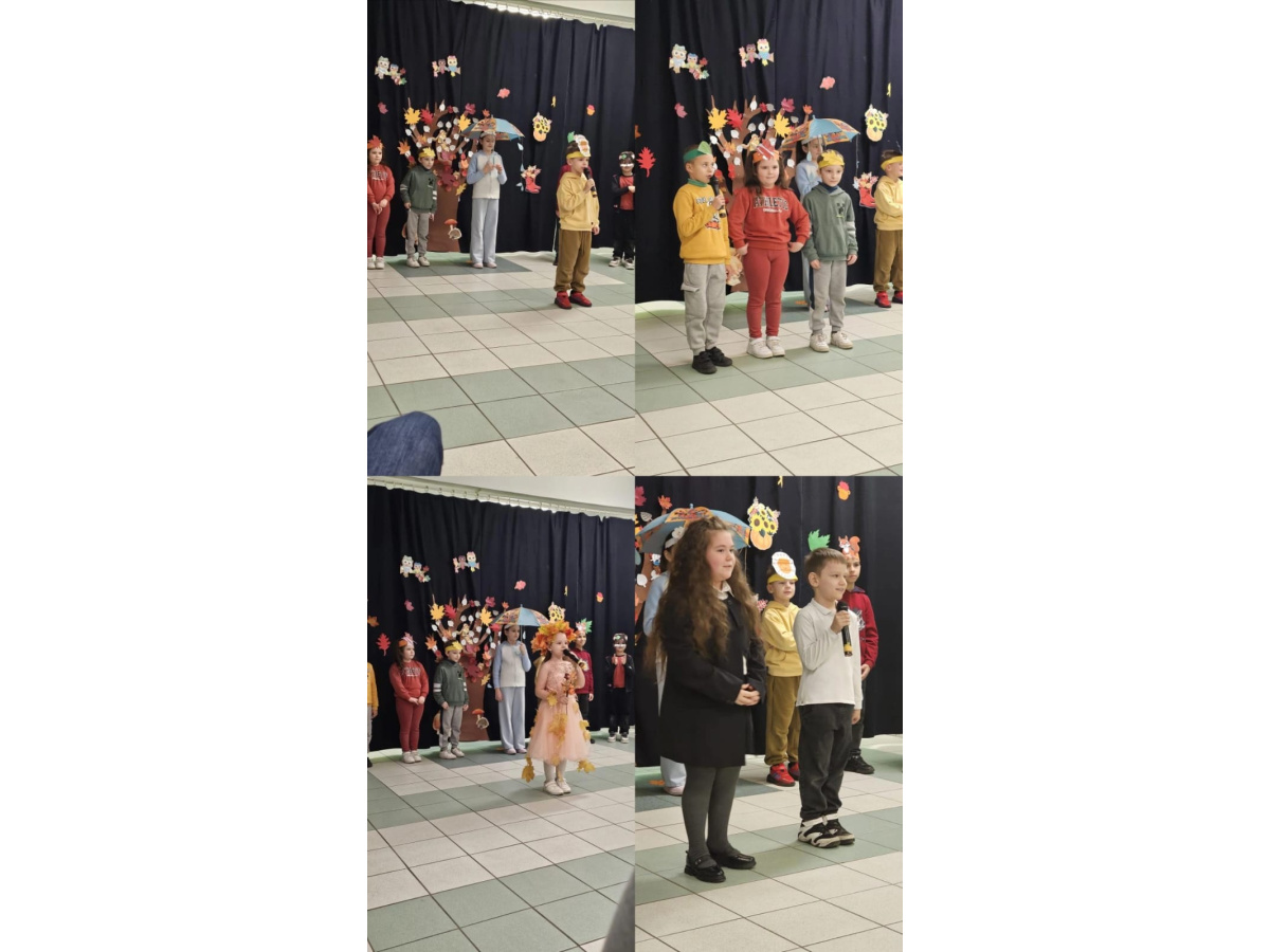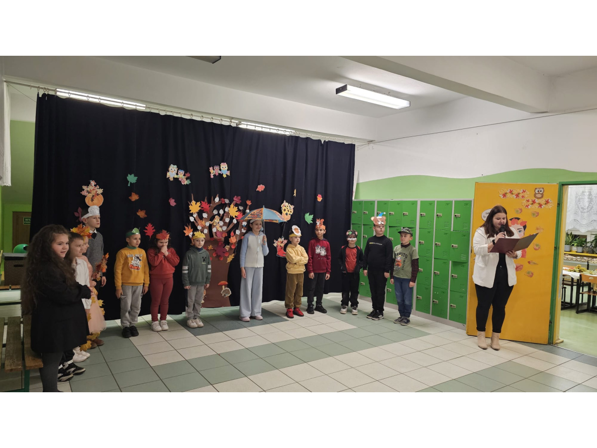 W czwartek, 13 listopada 2025 roku, w naszej szkole odbyło się jesienne przedstawienie przygotowane przez uczniów klasy 1–3OP. Mali artyści wprowadzili nas w wyjątkowy, kolorowy nastrój jesieni – pełen tańców, piosenek i wierszy o spadających liściach, wietrze i darach natury.