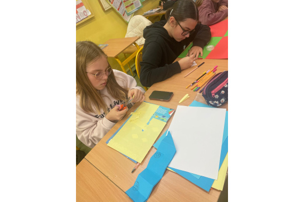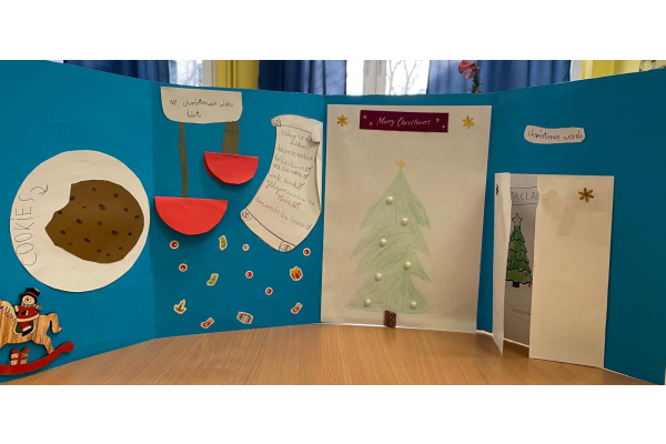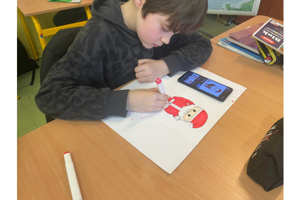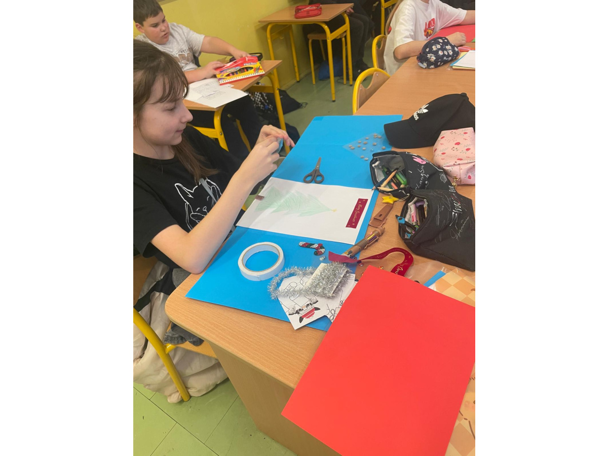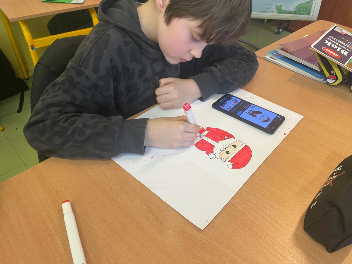 Uczniowie klas 1-8 wzięli udział w konkursie plastyczno-językowym „Kartka świąteczna w języku angielskim i niemieckim", zorganizowanym przez nauczycieli języków obcych.