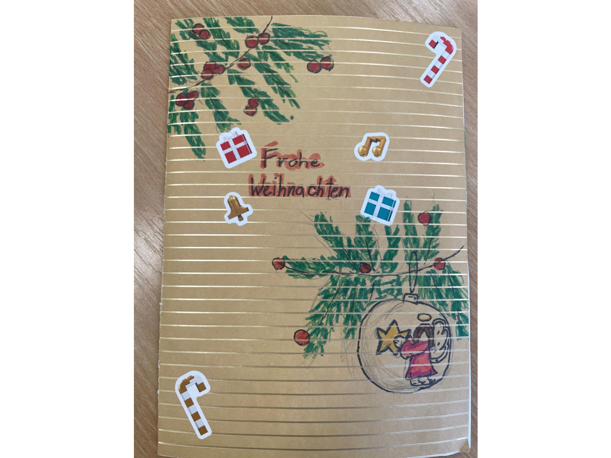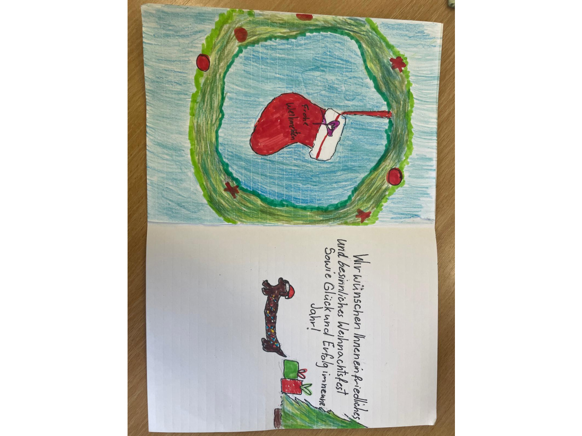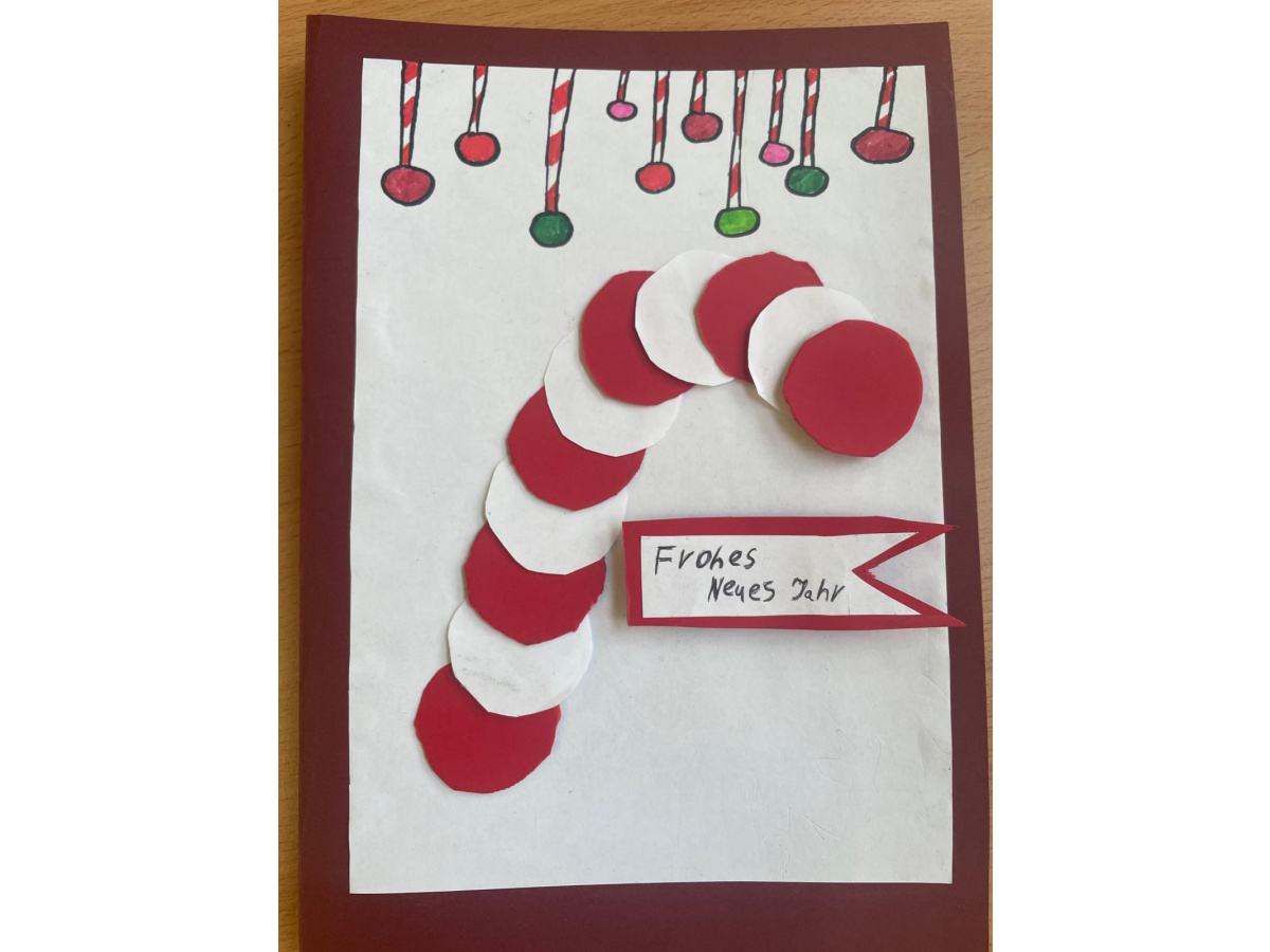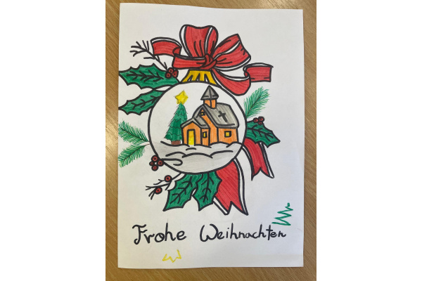 Zadanie konkursowe polegało na wykonaniu kartki świątecznej dowolną techniką z życzeniami w języku angielskim lub niemieckim. Kartki są bardzo ładne, kolorowe i pomysłowe. Zresztą zobaczcie sami.