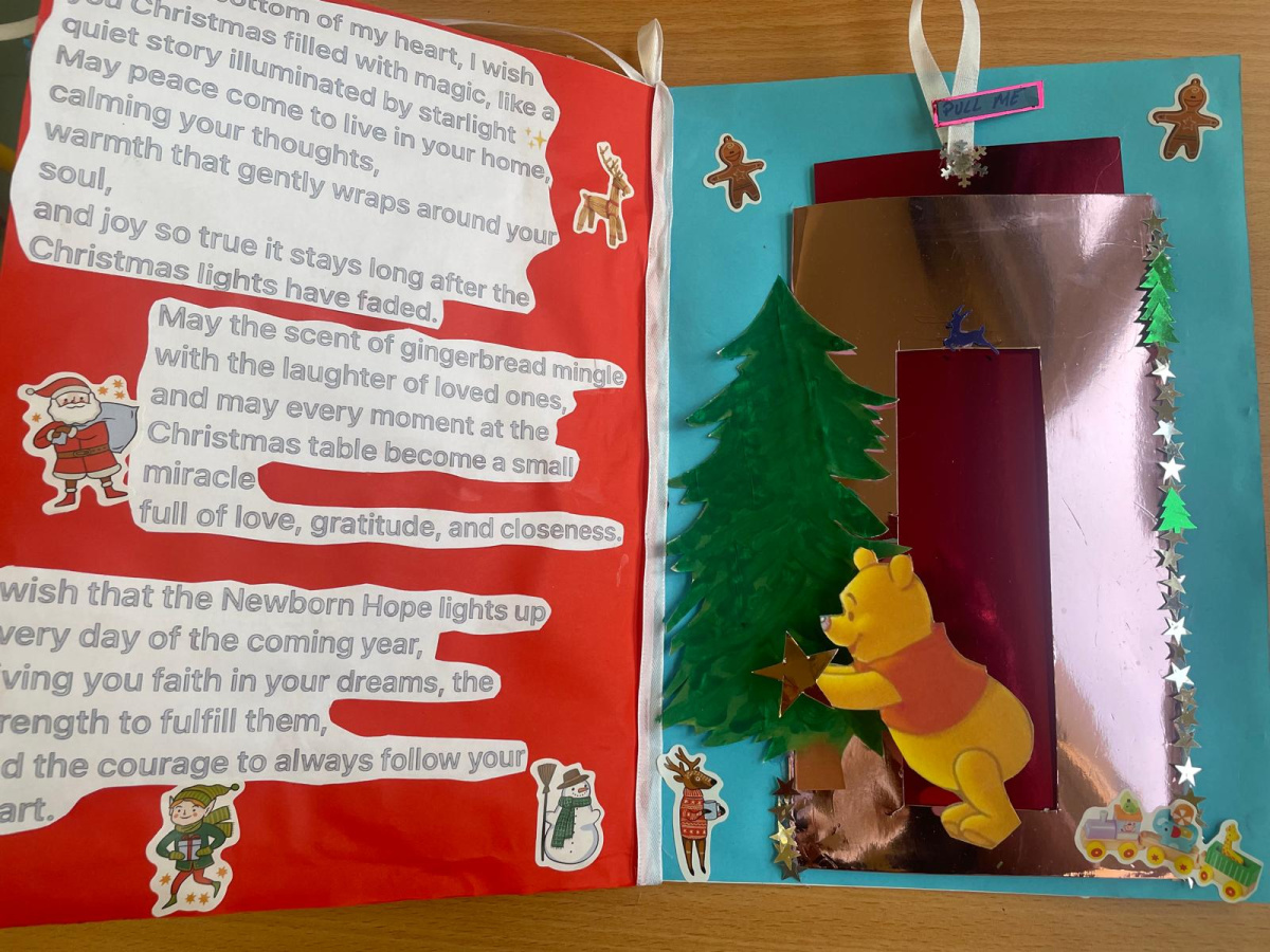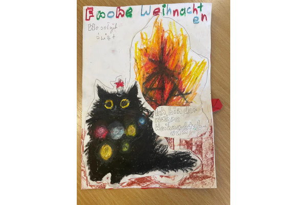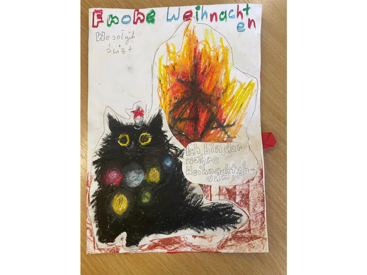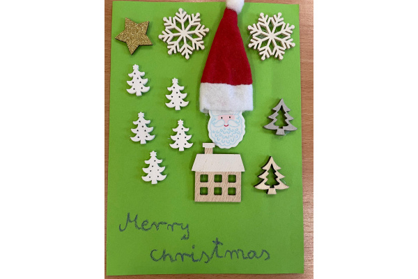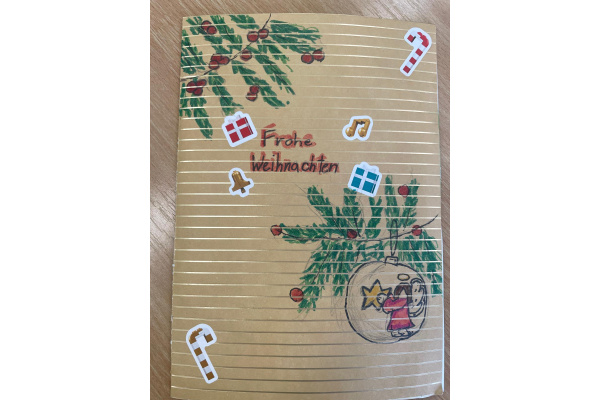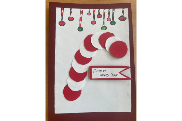 Zadanie konkursowe polegało na wykonaniu kartki świątecznej dowolną techniką z życzeniami w języku angielskim lub niemieckim. Kartki są bardzo ładne, kolorowe i pomysłowe. Zresztą zobaczcie sami.