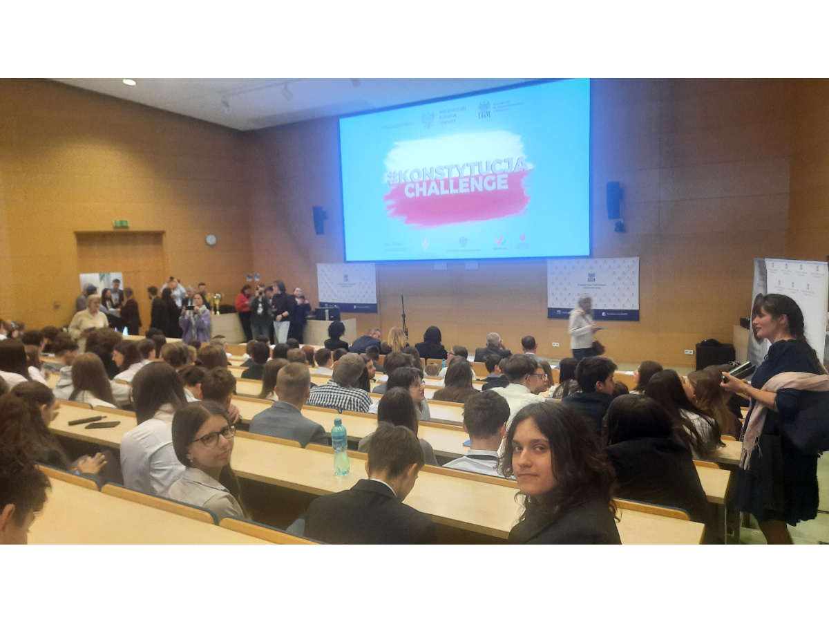 Uczniowie klasy 8a Solomiia Lesko i Sylwester Lewandowski, znaleźli się w finale Ponadwojewódzkiego Konkursu "KONSTYTUCJACHALLENGE- Konkurs wiedzy o Konstytucji RP i ustroju państwa" Organizatorem konkursu było Kuratorium Oświaty w Poznaniu i Uniwersytet im. Adama Mickiewicza w Poznaniu przy wsparciu IPN oraz Centrum Badań nad Konstytucjonalizmem i Demokracją. Finał i uroczysta gala odbyły się 23 kwietnia 2026 roku na Wydziale Nauk Politycznych i Dziennikarstwa UAM w Poznaniu. Uczniom gratulujemy.