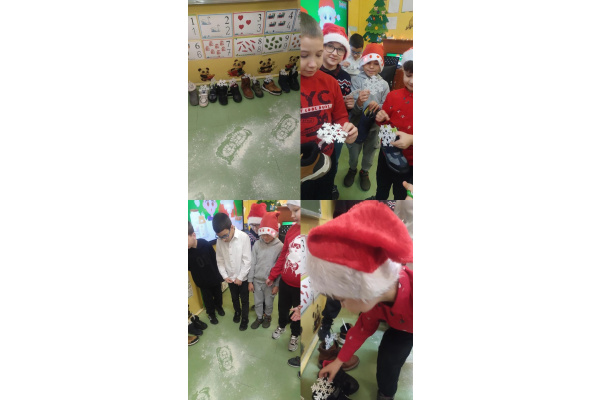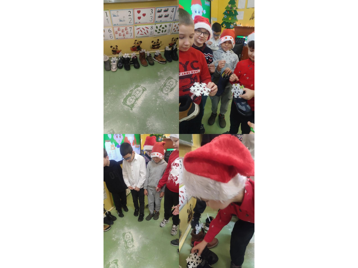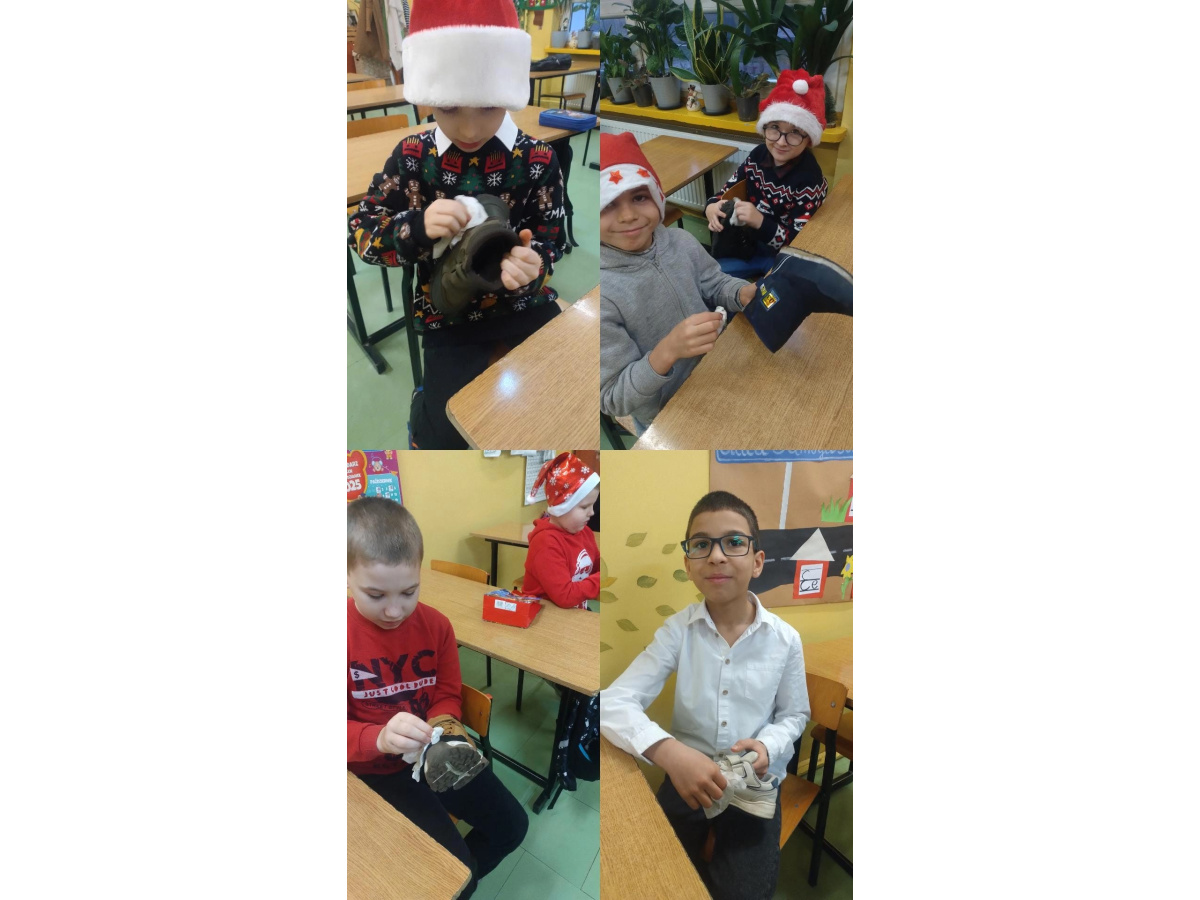 Zanim dzieci wyruszyły na poszukiwania Mikołaja po całej szkołe, starannie wyczyściły swoje buty, aby były gotowe na ewentualną wizytę Mikołaja. Gdy uczniowie przemierzali szkolne korytarze w poszukiwaniu wyjątkowego gościa, Mikołaj pojawił się w ich sali, zostawiając po sobie ślady butów ubrudzonych śniegiem. Ku ogromnej radości uczniów, każdy z nich znalazł dla siebie prezent.