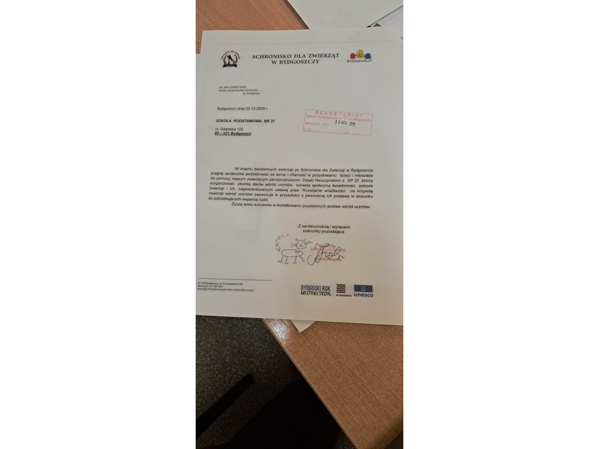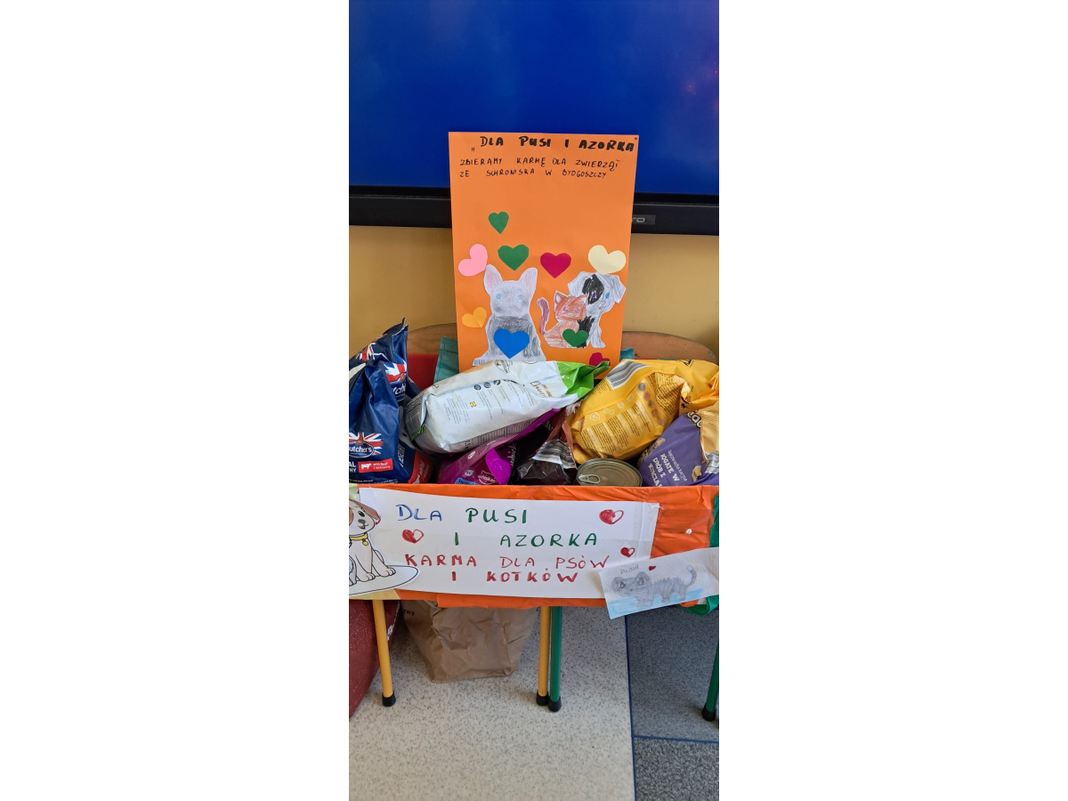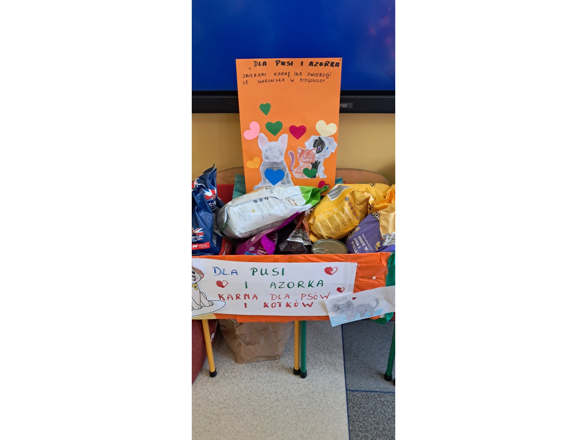 Dzięki ogromnemu zaangażowaniu uczniów, rodziców oraz nauczycieli udało się zebrać dużą ilość karmy, która została przekazana do Schroniska dla Zwierząt w Bydgoszczy. Każdy, nawet najmniejszy gest, miał ogromne znaczenie i realnie pomógł bezdomnym zwierzętom.