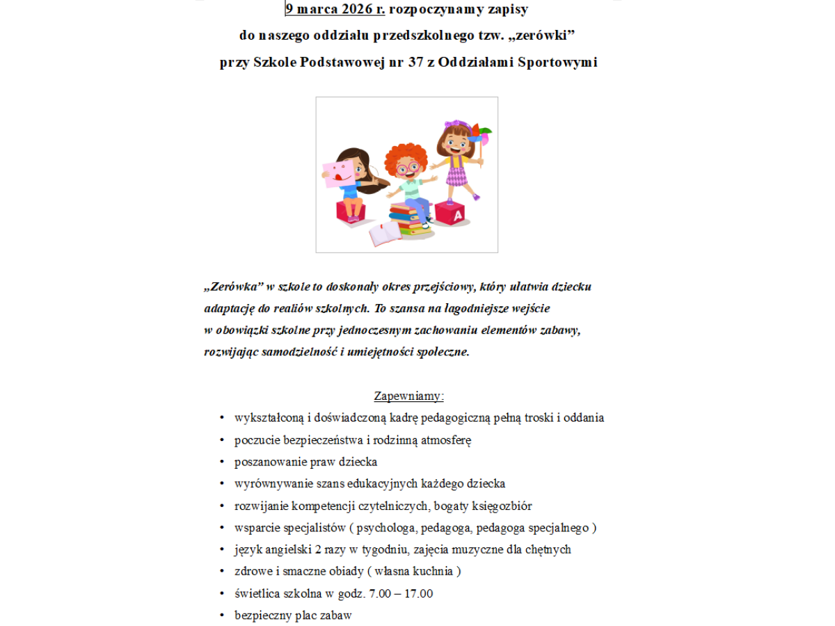 Rekrutacja do oddziału 0 i klas 1 SP 37 -ogólnych