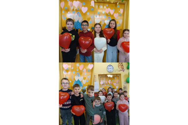 Podczas zajęć nie zabrakło także aktywności edukacyjnych – uczniowie z zaangażowaniem rozwiązywali walentynkowe zadania matematyczne oraz pokonywali specjalnie przygotowany walentynkowy labirynt. Na zakończenie wszyscy mogli cieszyć się słodkim poczęstunkiem, który był miłym zwieńczeniem wspólnego świętowania.